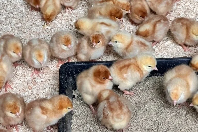 The team prepped the brooder with fresh shavings, water, and chick starter feed before the chicks arrived. On Tuesday, we all pitched in to unload them from the van and settle them into their new home for the next couple of months. It’s crucial to make sure every chick finds food and water in those first few hours — hydration is essential to get them off to a strong start.