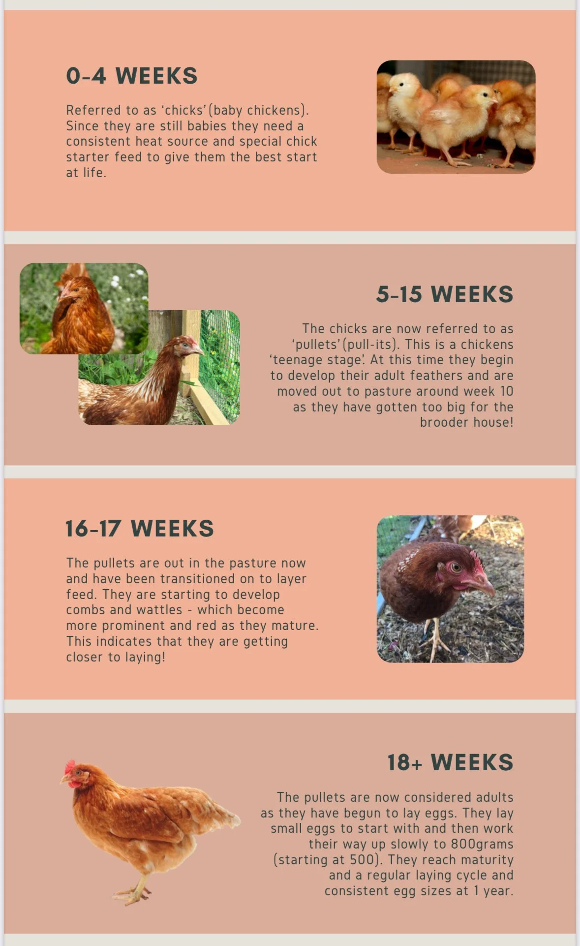 By 8–10 weeks, they’ll be ready to move out to their new pasture. This will be their forever home on the farm, and it’s perfectly suited to support their next stage of life — adolescence, and soon enough, laying. That move takes all hands on deck (and often happens after dark)… but we’ll save that story for another post!